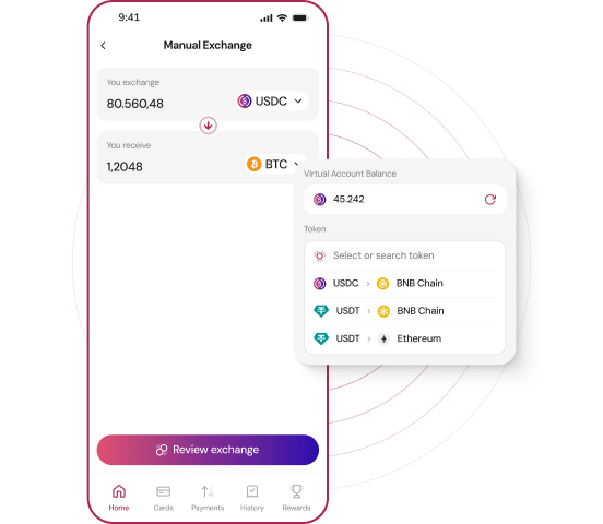 Make payments regardless of the type of assets you hold in your account or payment type. Accepted worldwide, pay using your card or through transfers.