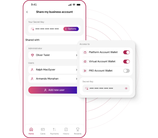 Manage any and all account types in one place. Set permissions, access levels, and more for both personal and business accounts.
