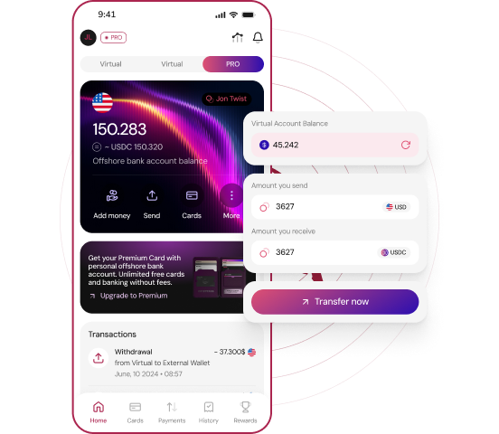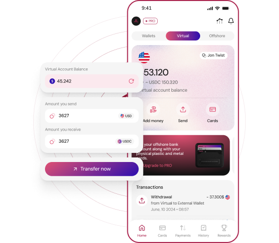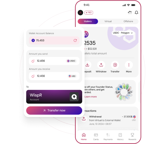 You can instantly transfer funds without fees between your accounts, whether they are bank accounts or wallets in AbsolutePay. The transfer is instant and fee-free, whether involving fiat or crypto. The exchange between the native currencies of the accounts is automatic and without fees.