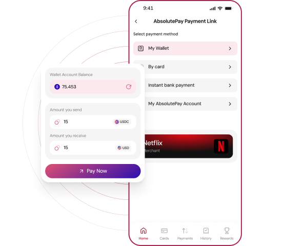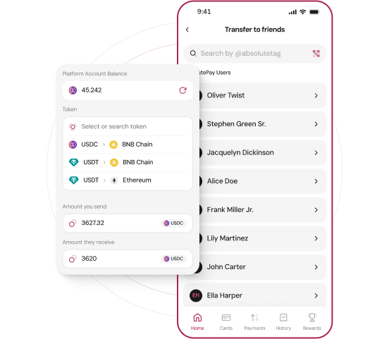From your crypto wallets, you can transfer to anyone. Whether they are a AbsolutePay user or not, you can easily and quickly transfer funds to anyone.